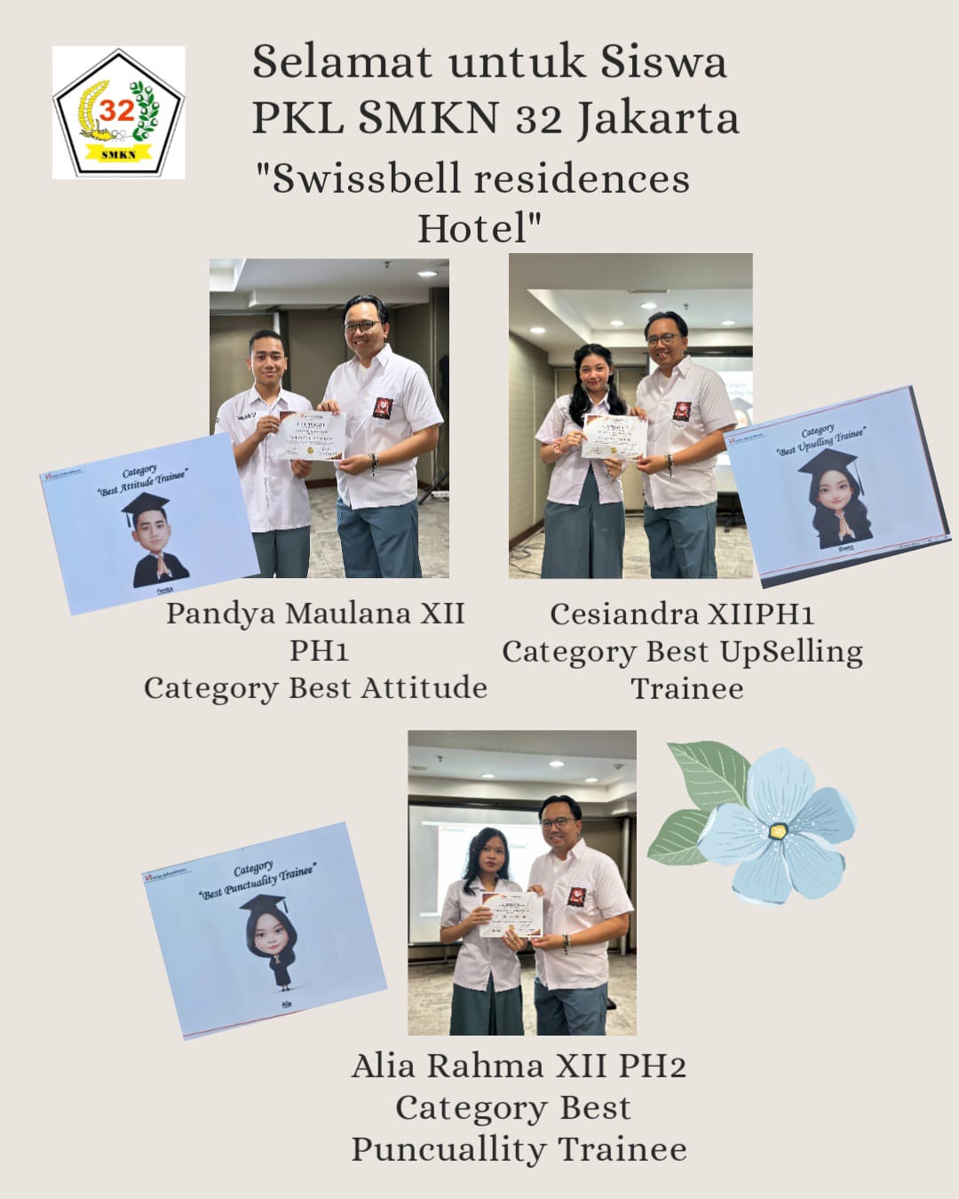 We would like to extend our appreciation to SMK N 32 Jakarta for continuously preparing students who are passionate, well-prepared, and committed to excellence. We believe this collaboration will continue to bring mutual benefits and support the development of future hospitality professionals.